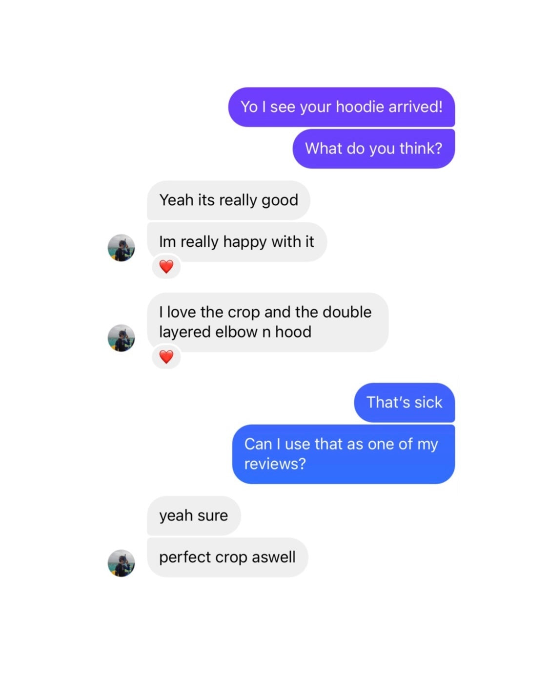 "Im really happy with it, I love the crop and the double layered elbow n hood"